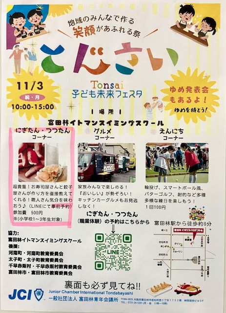 一般社団法人 富田林青年会議所(JCI)の皆さんが主催の 子どもフェスタを開かれます!
