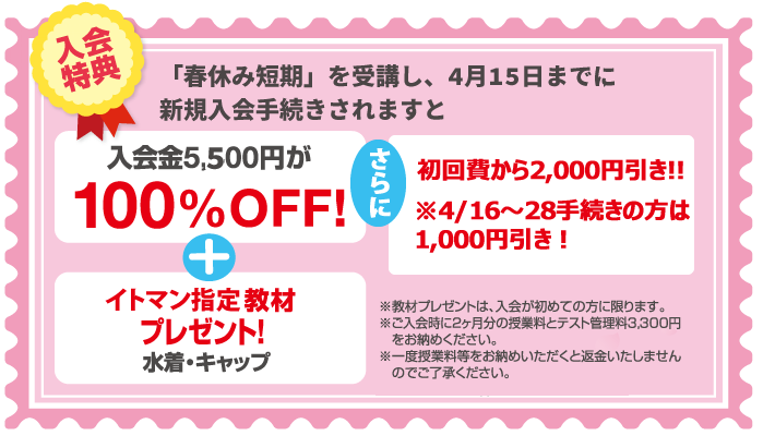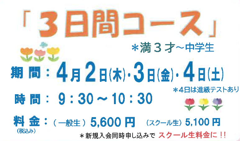 ※スクールが全く初めての方は、3月21日までに「一日無料体験」をしていただけます。