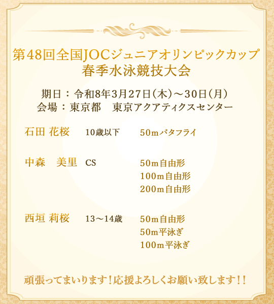 - 第48回全国JOCジュニアオリンピックカップ春季水泳競技大会出場者